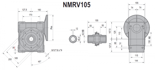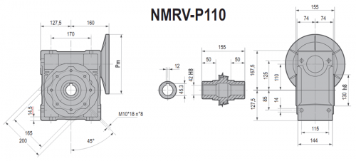 Вместо редуктора NMRV105 выпускаются редукторы NMRVpower-110. Все габаритно-присоединительные размеры идентичные, отличается только один размер, это толщина полки.